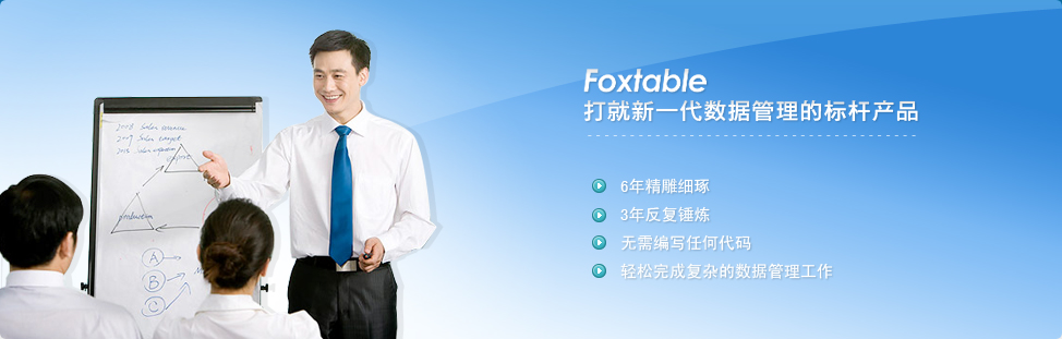 如果有人告訴你,有這樣一款軟件,不管你有沒有基礎,只需一周左右的時間就能讓你成為一個數據管理高手,而且其數據錄入之快捷、統計查詢之強大、報表輸出之多樣,目前市面上的軟件無出其右;同時只要你愿意,它可以立即變身為一個開發平臺,而且從PC到手機、從C/S到B/S、從客戶端到服務端、從單機到局域網再到互聯網、從常規的數據管理到文檔管理、從單業務管理系統到企業整套ERP,包括企業IM,它都能勝任開發,并且可以編譯成獨立的可執行文件。它不僅簡單,而且高效,高效到一人可抵一個小團隊;它能讓一個完全沒有接觸過編程的職場菜鳥,在3個月甚至更短的時間內蛻變為一個管理軟件開發的全棧工程師。你可能不會相信,真的有這樣的軟件嗎?有,就是Foxtable!Foxtable將Excel、Access、Foxpro、VB以及易表的優勢融合在一起,無論是數據錄入、查詢、統計,還是報表生成,都前所未有的強大和易用,普通用戶無需編寫任何代碼,即可輕松完成復雜的數據管理工作,真正做到拿來即用。同時Foxtable又是一個高效開發工具,專門針對數據管理軟件的開發作了大量的優化,使得用戶在開發過程中只需關注商業邏輯, 無需糾纏于具體功能的實現,這樣Foxtable不僅開發效率十倍于其他專業開發工具,而且更加易用,幾乎人人都能掌握。讓普通人開發出專業水準的管理軟件,以前是一個不可思議的想法,而Foxtable的出現,讓這成為現實。而且Foxtable內置了HTTP服務和手機網頁生成功能,用戶不需要任何專業知識,甚至可以完全不懂網頁設計,也能快速開發出手機端的管理軟件。此外,Foxtable不僅內建數據庫,還支持Access、SQL Server、Oracle等主流數據庫作為外部數據源,并提供了數據動態加載、后臺統計等功能,使得相距千里的不同電腦協同處理數據,以及海量數據管理,非專業人士也能輕松應付,從而讓普通人也能快速開發出各種基于互聯網的管理系統,如進銷存、MRP、ERP、OA、CRM、SCM、MIS系統等等。不僅如此,FoxTable還同時具備B/S和C/S架構的優勢,可以像B/S軟件一樣易于部署,同時又具備C/S軟件良好的用戶體驗和交互性。經過十年的發展,目前國內已經有數萬企事業單位成功利用Foxtable自行開發管理系統,不再受制于軟件公司,不少單位節省了以十萬甚至百萬計算的費用;同時也發展了一大批個人愛好者,這些愛好者很多都是企業管理人員,熟悉管理和業務邏輯,以前苦于沒有合適的開發工具,無法根據自己的需要自行開發系統,Foxtable的出現,讓他們如虎添翼,紛紛開發出適合自己企業的管理軟件,讓領導和同事刮目相看,大大提高了自己在職場的競爭實力,一些用戶因此改變了自己的職業生涯甚至人生。 [ + 展開 ]